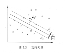 对yi=−1的正例点,支持向量在超平面H2:w⋅x+b=−1;